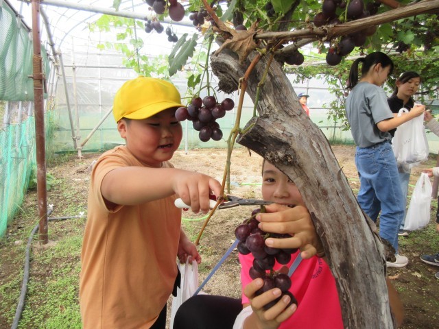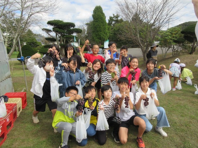 9/24(水)に幌村建設でブドウ狩りがありました。毎年恒例で1・6年生は本当に楽しみしている行事です。特に6年生は1年生の時にコロナ化でブドウ狩りに行けなかったので、今回は1年生と同じくらい大喜びでした。