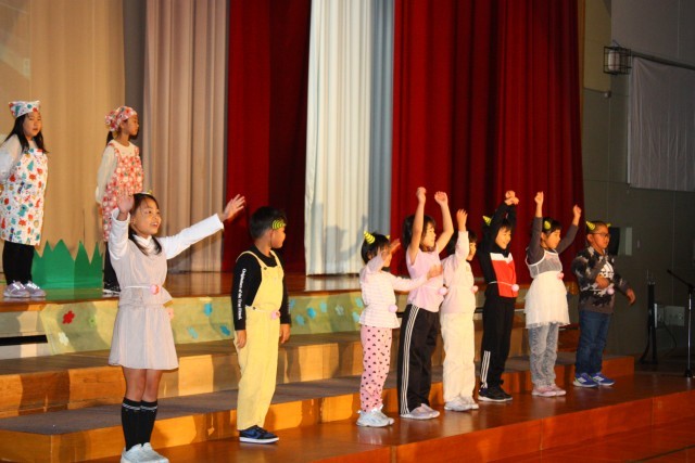 10月18日(土)に学習発表会がありました。全校児童がこれまでの練習の成果を発揮できました。それぞれの学年の一場面を紹介します。