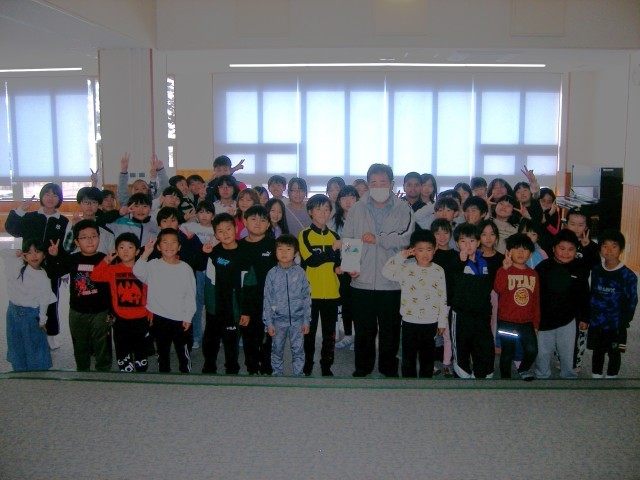 今年もJAみついし様より全校と教職員へ三石産米「トキノミノル」を一人一袋いただきました。児童会長の田渕さんが代表でお礼を伝え、全校児童で笑顔の記念写真を撮りました。毎年ありがとうございます。