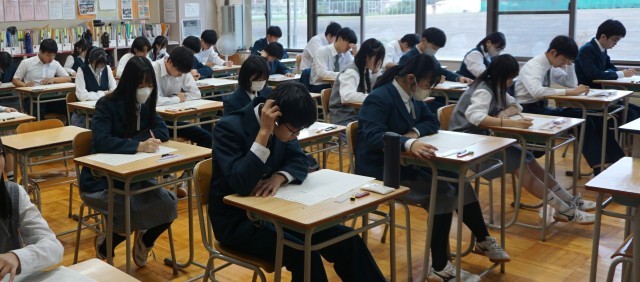 3年生教室では、テストが毎月実施されています。受験生の姿がそこにあります。