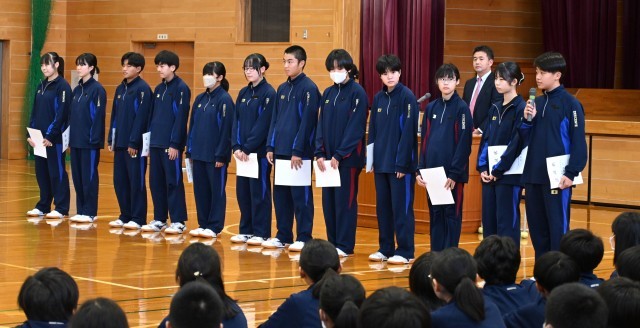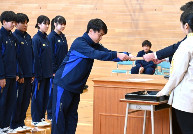 認証式がありました。静内中学校生徒会および各学年・学級の新体制始動となります。