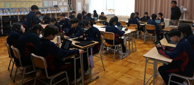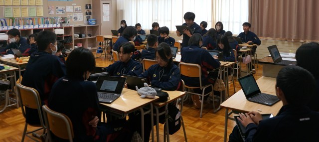 生徒総会では生徒会書記局や各委員会の活動反省・計画について質疑が行われます。学級では、各担当が提案をし、議案(データ共有)審議をしていました。