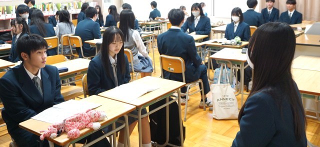 3年生は面接練習中。明日からの冬休み、筆記試験に向けた勉強とあわせて、志望動機や自己アピール等、自分の考えを整理、まとめてみましょう。