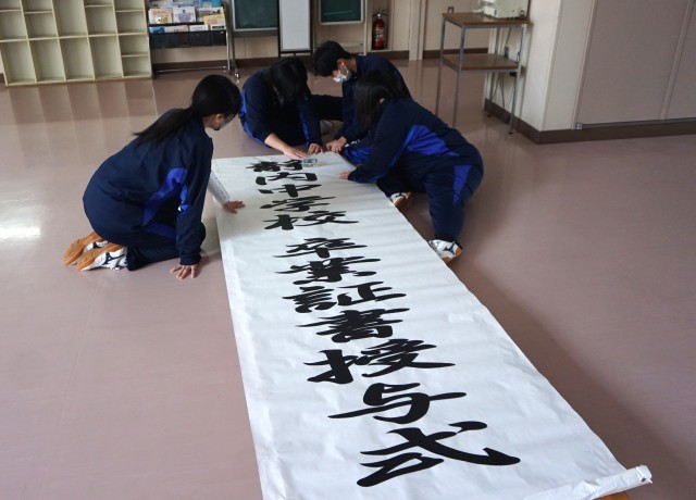 卒業生のために 公開日 2026/03/12 更新日 2026/03/12 記事 明日は卒業式。在校生は卒業生のことを想いながら会場準備をしていました。卒業生の旅立ちを全校生徒、教職員、保護者、地域関係者、全員で見届け、祝福します。卒業生は、静内中での思い出を胸に、堂々とした姿をみせてください。