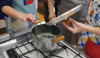E組では、いも団子づくり。じゃがいもを切って、ゆでて、つぶして、形を整え、揚げ...