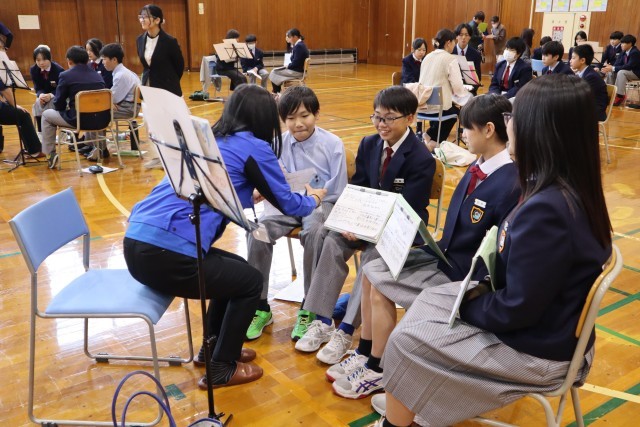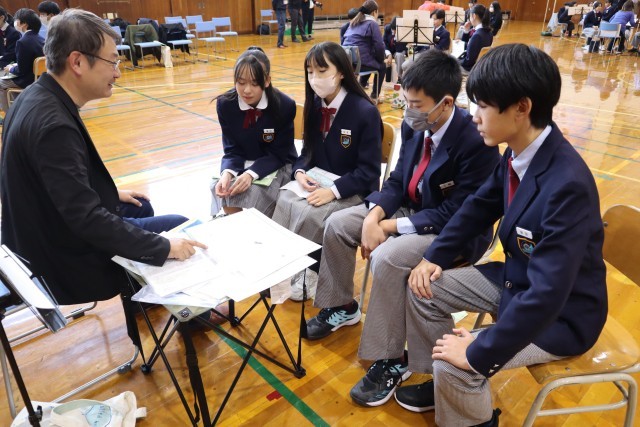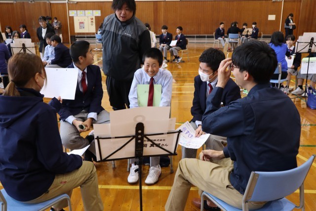 10月28日(火)、1年生が本校の体育館で「中学生とジモトの大人のオシゴトーク」に参加しました。