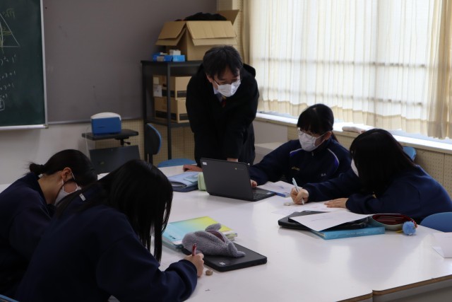 本来、3年生は1つの学級が「2つの教室」で数学の授業を行っていましたが、今は1つの学級が3つに分かれて「1つの教室」で行っています。いずれにしても、3年生は受験まであと少し…。ラストスパートです!