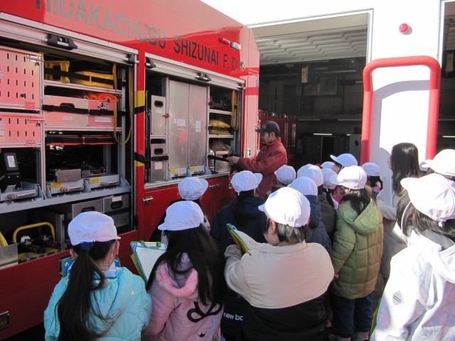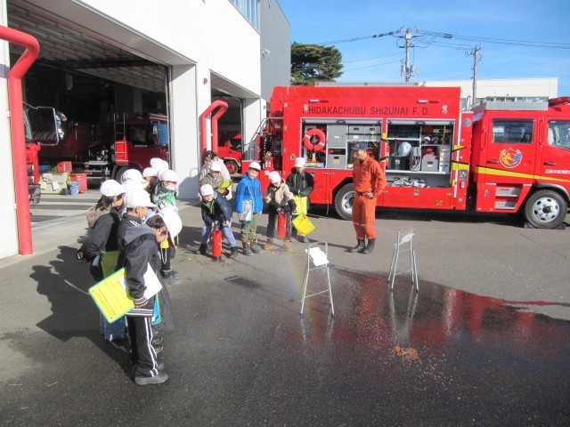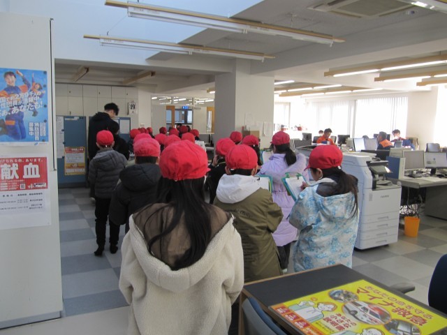 3年生消防署見学 公開日 2025/12/22 更新日 2025/12/22 📷学校生活の様子 先週の金曜日に、3年生が消防署の見学に行ってきました。建物の中や消防車について、署の方が詳しく説明してくれました。指令室では、緊急通報が入った際の様子を、実際に再現してくれました。 外では、消防車の装備について説明を受けたり、消火器を使った消火訓練も行いました。教科書で学んだことを実際に見ることができて、子供たちも嬉しそうでした。 消防署の皆様、お忙しい中、誠にありがとうございました。 +2