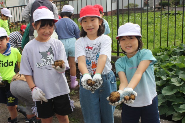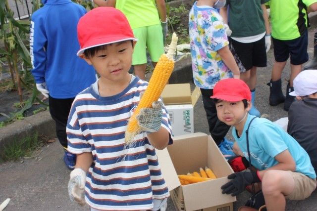 9月17日(水)2年生が学級の畑で収穫作業をしていました。