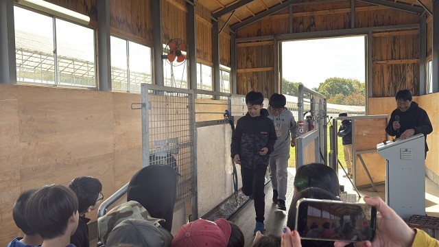 ビッグレッドファームの見学 公開日 2025/10/21 更新日 2025/10/21 今日のパチリ 10月20日(月)5年生が新冠のビッグレッドファームさんを見学しました。1歳以上の馬の育成や、仕事の場所を見せてもらい、また、馬が使う運動器具を体験させていただきました。 実際に見たりお話を聞いたりしながら、馬に関わる仕事を学ぶことができました。