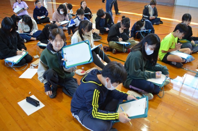 子どもたちは実際に目の前で描かれるイラストに驚いていました。
