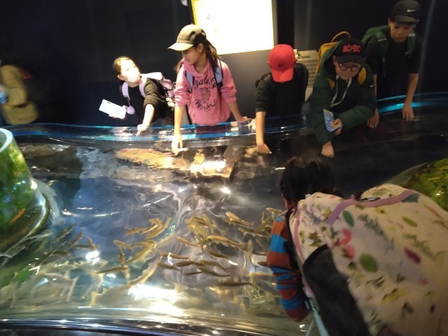 また、魚を触っていいコーナーにはみんな興味津々。何度も水槽に手を入れ魚の背中を撫でていました。
