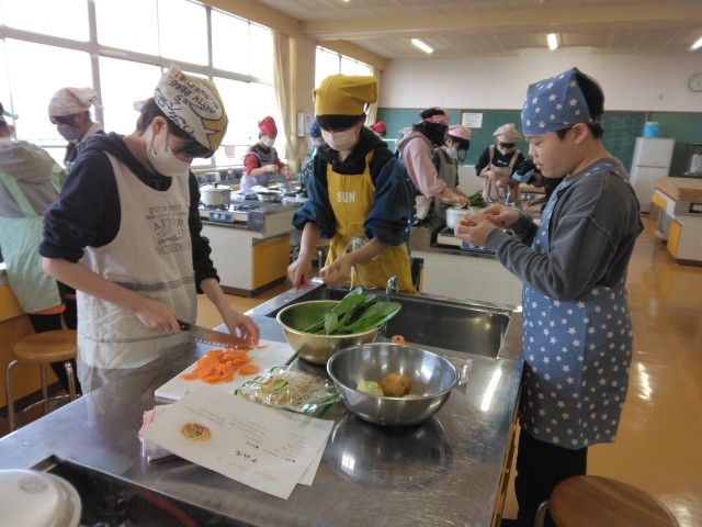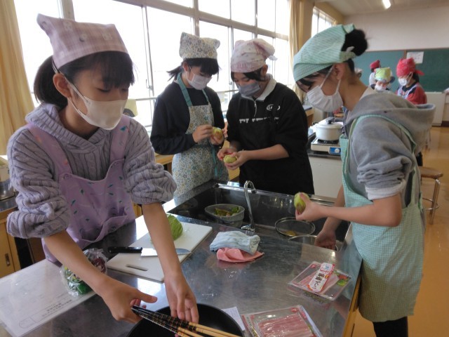 6年生調理実習 公開日 2025/12/03 更新日 2025/12/03 今日のパチリ 12月3日(水)3・4時間目に6年1組が調理実習をしていました。メニューは各班で考えたメニューで、どの班も2品をみんなで手分けして作っていました。お昼には給食+自分たちが作ったメニューを美味しく食べることができました。